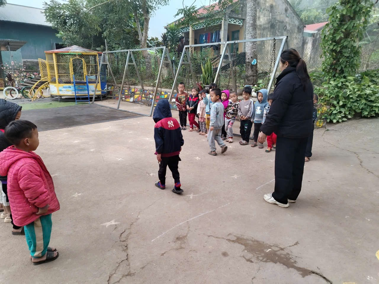 * Hoạt động ngoài trời: Xen kẽ giữa động và tĩnh cô giáo đã tổ chức linh hoạt các hoạt động để đảm bảo phù hợp với sự nhận thức và phát triển của bé. Khi chơi, bé được sàng lọc thông tin, tổng hợp ý kiến từ những kinh nghiệm đầu tiên, khám phá và thử nghiệm với môi trường. Vui chơi mang đến cho trẻ những cơ hội để làm giàu kiến thức, học hỏi và thực hành những kĩ năng mới. Tạo cho trẻ trạng thái thích thu đam mê, thích thú đi học
