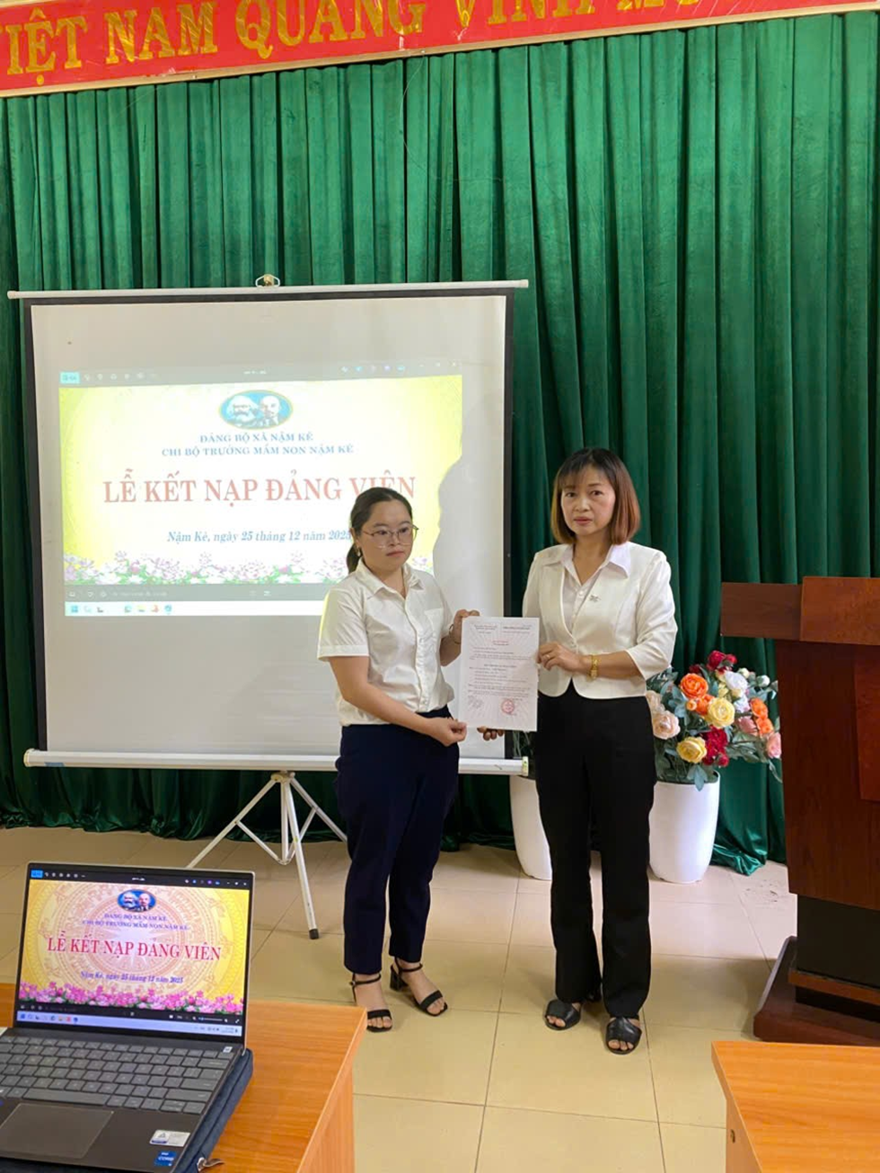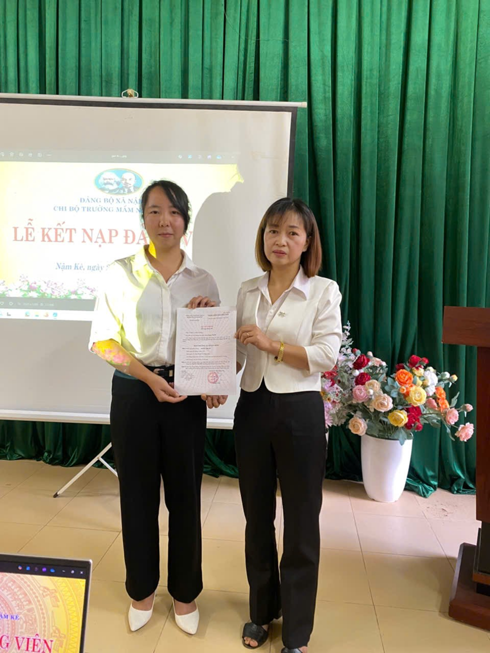 Sinh thời Chủ tịch Hồ Chí Minh đã khẳng định: “Vấn đề phát triển Đảng là vấn đề quan trọng trong xây dựng Đảng. Đảng phải có một số lượng đảng viên nhất định mới hình thành nên tổ chức đảng. Sự nghiệp lãnh đạo cách mạng của Đảng là sự nghiệp vĩ đại lâu dài phải do nhiều thế hệ chiến sĩ cộng sản tham gia gánh vác. Năng lực lãnh đạo và sức chiến đấu chỉ có thể có trên cơ sở số lượng, chất lượng đội ngũ đảng viên tương ứng. Do đó, Đảng phải thường xuyên làm tốt công tác phát triển đảng” Chi bộ trường mầm non Nậm Kè tiếp tục tổ chức các hoạt động trọng tâm công tác xây dựng đảng, trường mầm non Nậm Kè tổ chức kết nạp đảng viên cho 2 quần chúng: Vàng Thị Hoa và Hạng Thị Dở. Lễ kết nạp đảng viên được diễn ra trong không khí trang nghiêm, đúng trình tự, thủ tục của Điều lệ đảng. Đồng chí Nguyễn Thị Như Quỳnh, Phó Bí thư chi bộ Tổ chức – Hành chính đọc và trao Quyết định kết nạp đảng viên; giao nhiệm vụ đảng viên và người hướng dẫn. Trong niềm xúc động đồng chí Hạng Thị Dở trân trọng cảm ơn Chi bộ đã bồi dưỡng giúp đỡ để đồng chí để được đứng trong hàng ngũ của Đảng. Đồng thời xin hứa sẽ luôn phấn đấu và hoàn thành tốt nhiệm vụ được giao để xứng đáng với sự tin tưởng của Chi bộ. Sau thời gian làm việc trang trọng và nghiêm túc buổi lễ kết nạp đảng viên đã thành công tốt đẹp./.