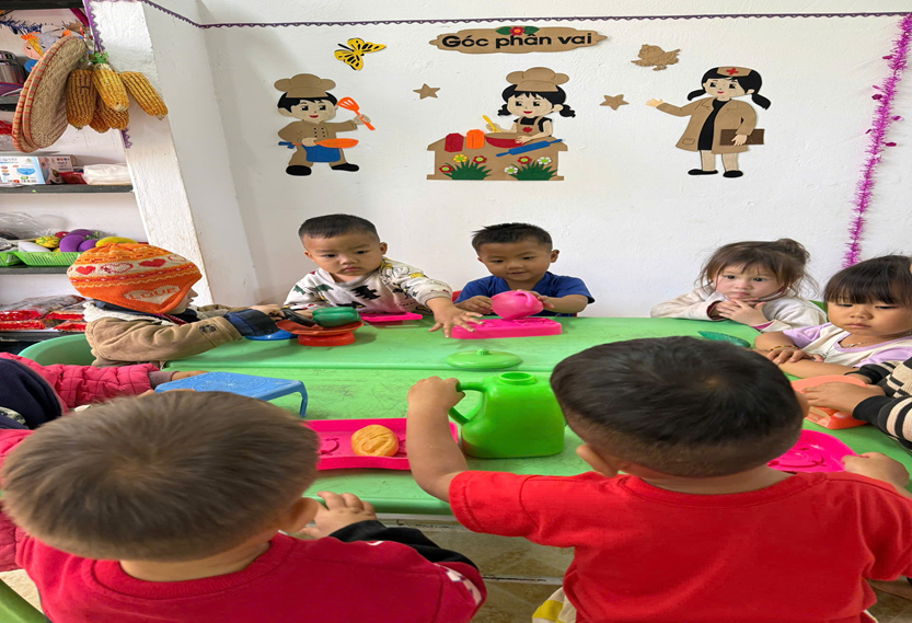 Đối với mầm non thì chăm sóc nuôi dưỡng giáo dục trẻ là nghề rất vất vả trong nghề nhà giáo, đối với trẻ nhỏ như trồng cây non cần chăm sóc cẩn thận nếu như không có tình yêu thương trẻ thì thật khó có thể làm được. Đối với giáo viên ở vùng cao thì lại càng khó hơn, trẻ nhỏ lại học lớp mẫu giáo độ tuổi 3 - 4 tuổi, vốn tiếng Việt của trẻ nhỏ gần như không có, giáo viên luôn phải dùng song ngữ đối với trẻ nhỏ, đối với các cô để mỗi ngày trẻ đến trường là một ngày vui luôn tạo cho trẻ cảm giác thoải mái muốn được đi học. Sau giờ học, giải lao thì các bé càng năng nổ hơn khi đến với hoạt động góc và đây là hoạt hộng được các bé đón nhận và yêu thích nhất.